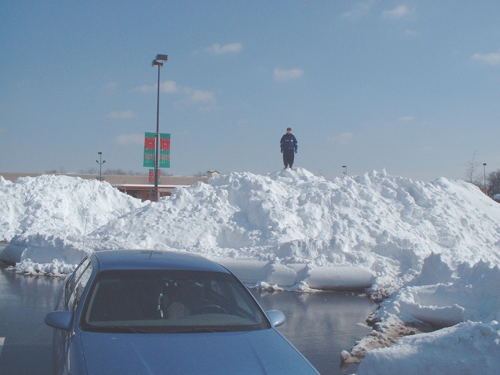 Our Son atop a snow mound at Chatham Mall