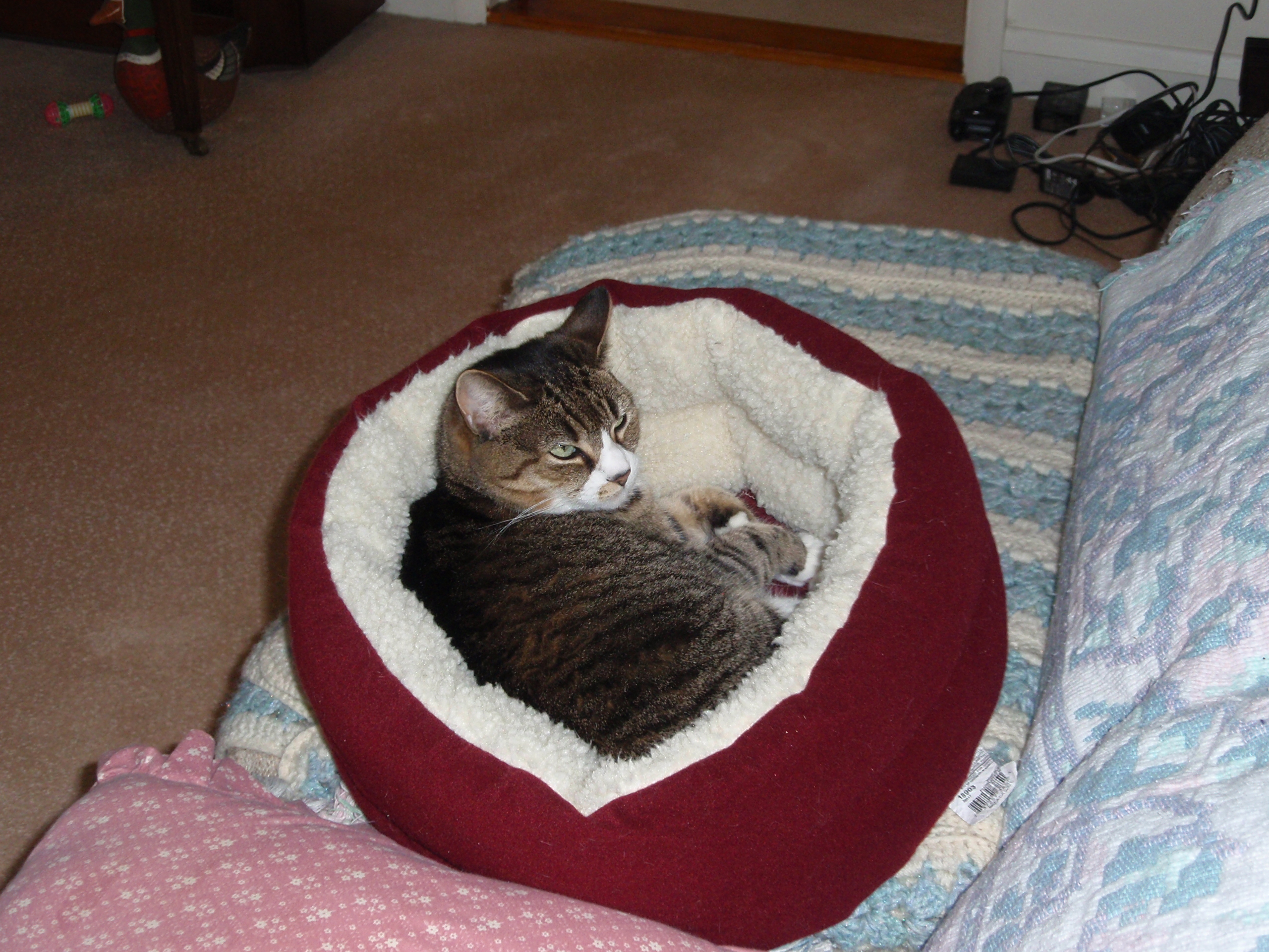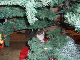 Tabby with new present Tabby studying the fake tree